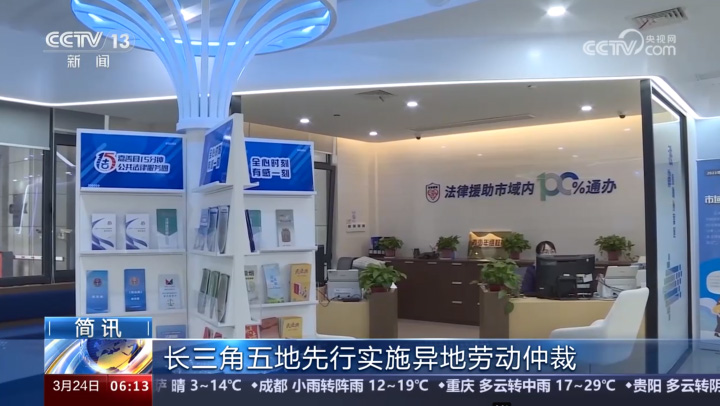同日,中央廣播電視總臺(tái)新聞?lì)l道《朝聞天下》播出《長三角五地先行實(shí)施異地勞動(dòng)仲裁》。
